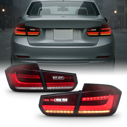 AKKON - Fits 2012-2015 BMW 3 Series F30 [FULL LED] Red Clear Brake Tail Lights Pair Left+Right w/ Sequential Turn Signal