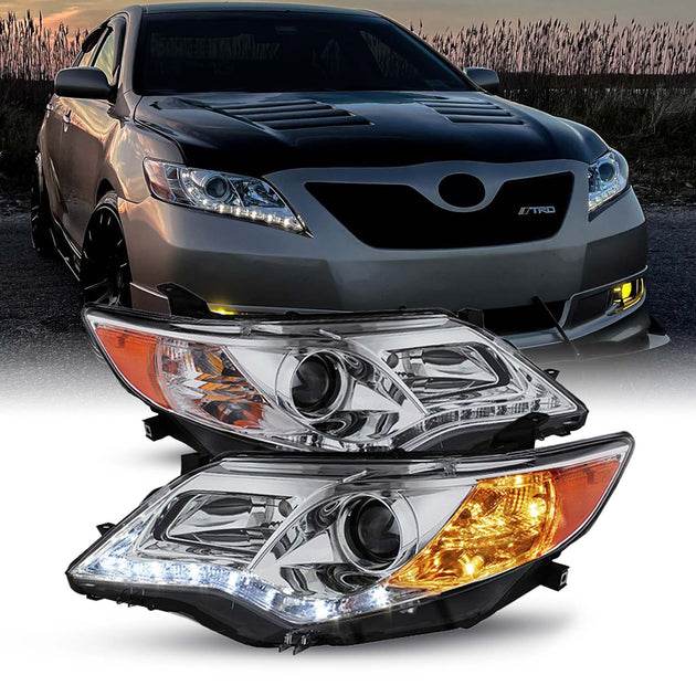 AKKON - For 12-14 Toyota Camry XV50 Chrome Clear DRL Daylight LED Strip Projector Headlights Front Lamp Left + Right