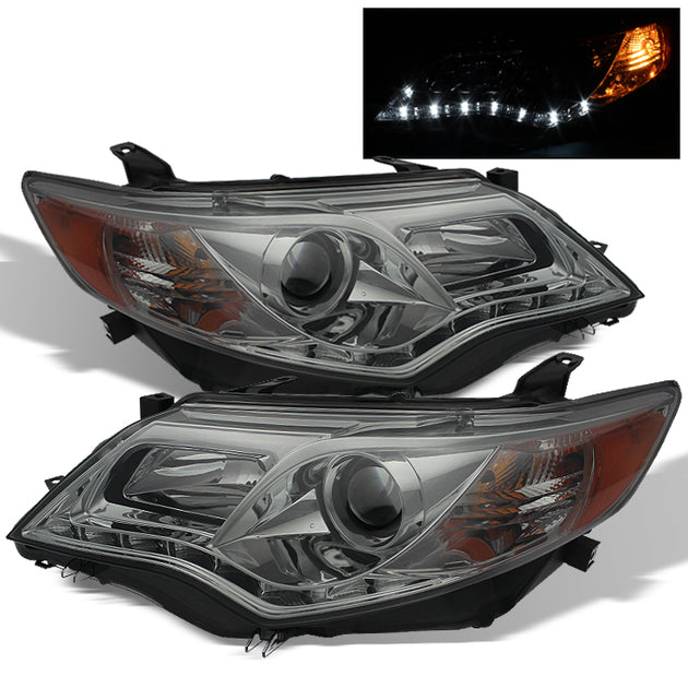 AKKON - For 12-14 Toyota Camry XV50 Smoked Smoke DRL Daylight LED Strip Projector Headlights Front Lamp Left + Right