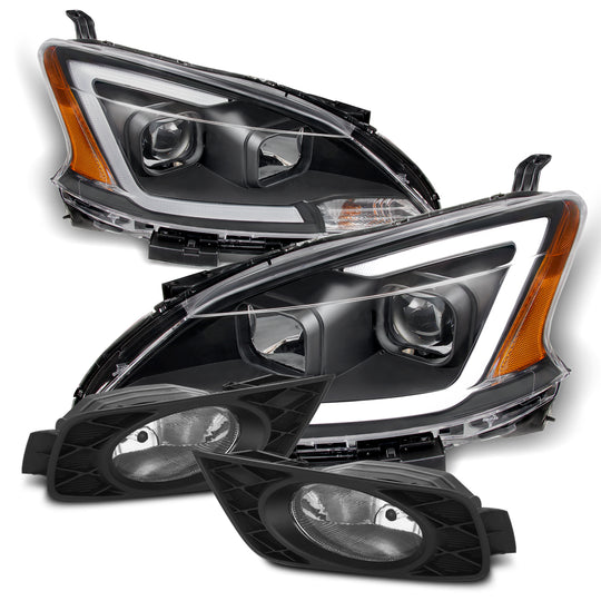 AKKON - Fits 2013 2014 2015 Sentra LED DRL Projector Front Black Bezel Headlights Headlamps Pair + LED Fog Lamp