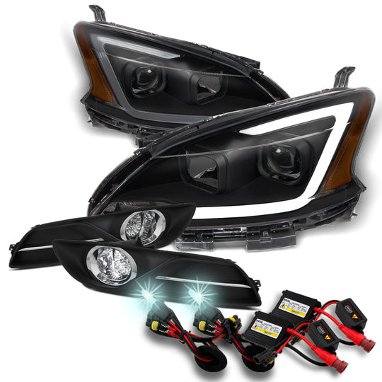 AKKON - Fits 2013 2014 2015 Sentra LED DRL Projector Black Smoked Headlights Headlamps + Chrome LED Fog Lamp + 6000K HID