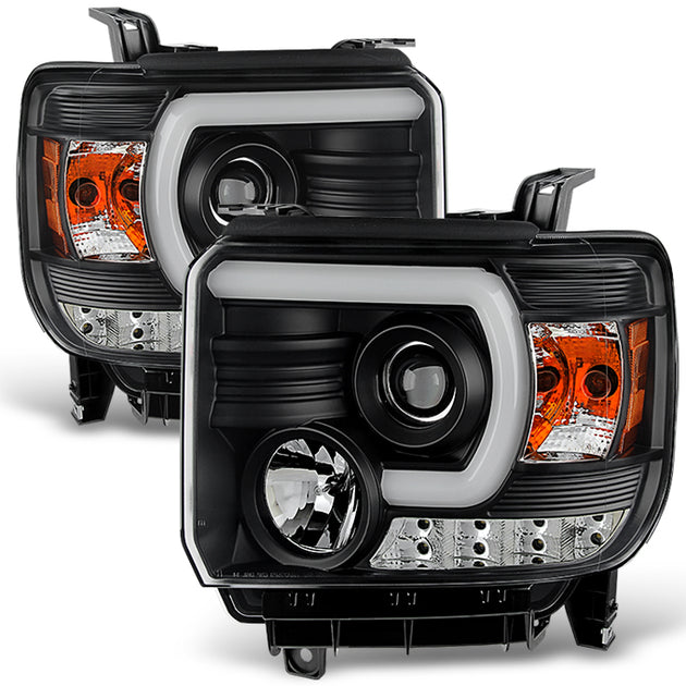 AKKON - For 14-17 GMC Sierra 1500/2500HD/3500HD BLACK C-Shape LED DRL Projector Headlights Pair