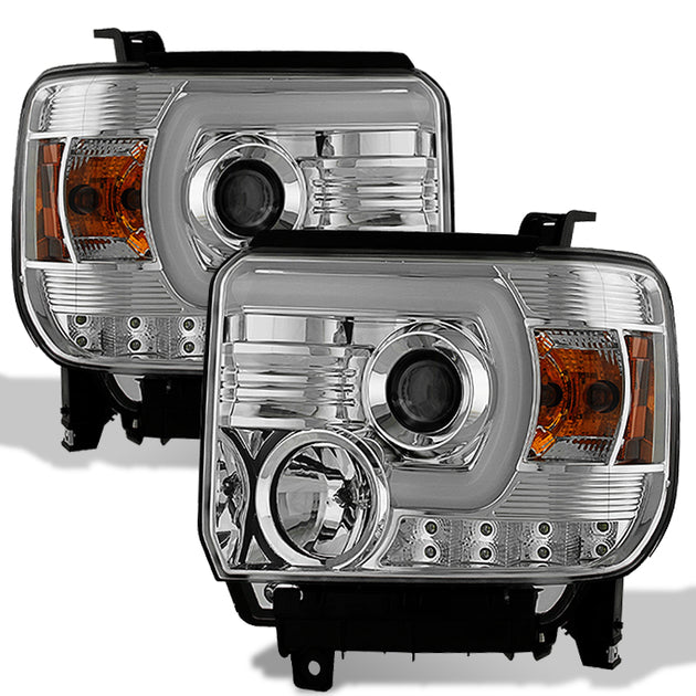 AKKON - For 14-17 GMC Sierra 1500/2500HD/3500HD Chrome Clear C-Shape LED DRL Projector Headlights Pair