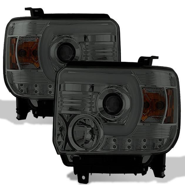 AKKON - For 14-17 GMC Sierra Chrome Smoked DRL Daylight LED Strip Projector Replacement Headlights Lamp