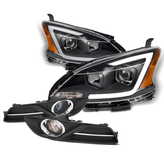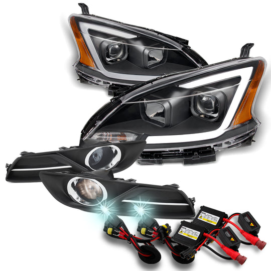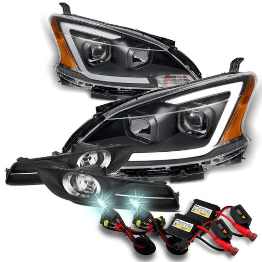 AKKON - Fits 2013 2014 2015 Sentra LED DRL Projector Front Black Bezel Headlights Headlamps Pair + LED Fog Lamp + 8000K HID