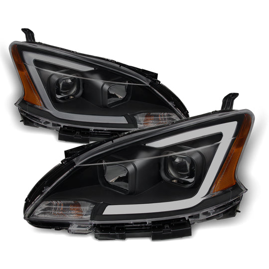 AKKON - Fits 2013 2014 2015 Sentra LED DRL Projector Front Black Smoked Headlights Headlamps Pair Left + Right