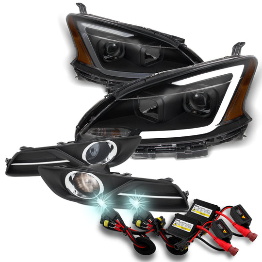 AKKON - Fits 2013 2014 2015 Sentra LED DRL Projector Front Black Smoked Headlights Headlamps Pair + Fog Lamp + 6000K HID