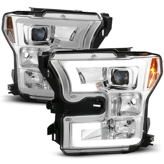 AKKON - For 15-17 Ford F150 F-150 Pickup Chrome Clear DRL Daylight LED Strip Projector Headlights Lamps