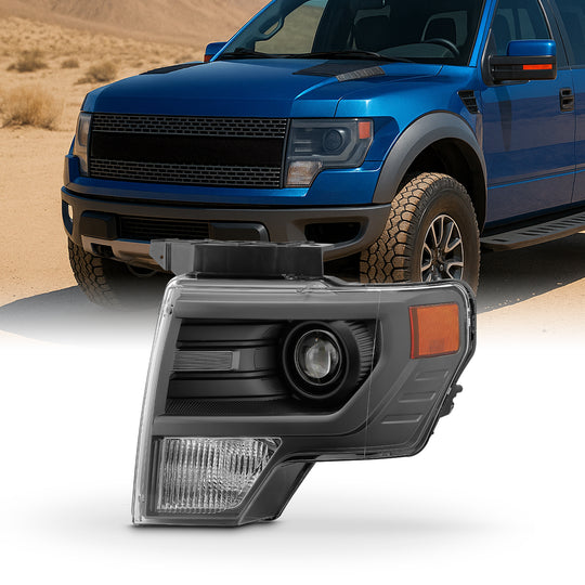 AKKON - Fits 2013-2014 Ford F150 SVT Raptor [HID/Xenon Type] Projector Grey Headlight Driver Left Side Replacement