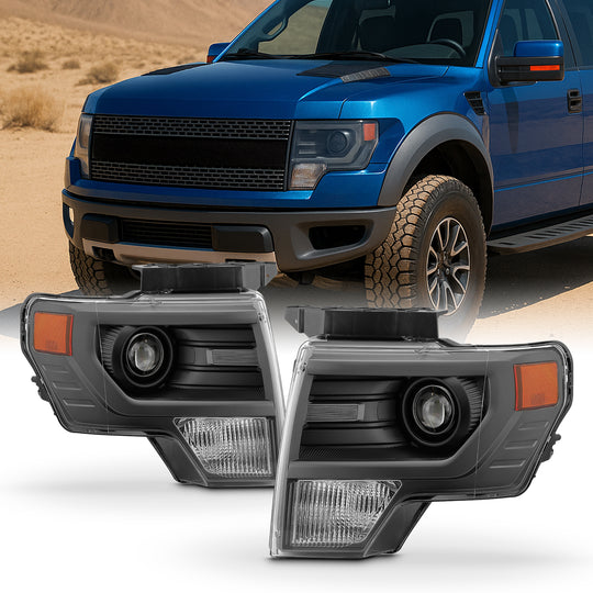 AKKON - Fits 2013-2014 Ford F150 SVT Raptor [HID/Xenon Type] Projector Grey Headlights Pair Driver+Passenger Replacement