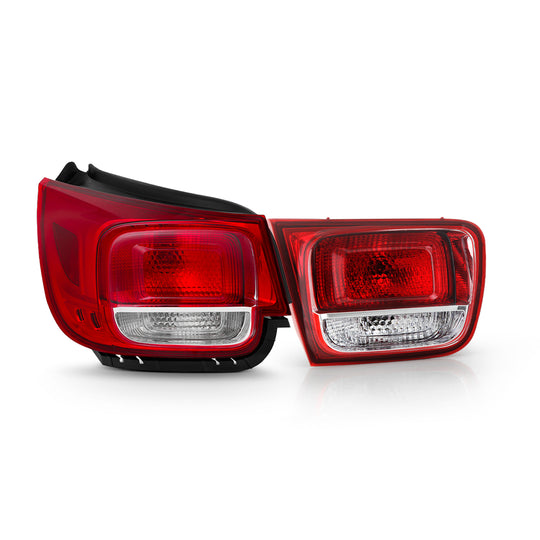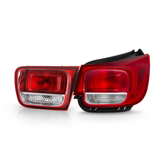 AKKON - Fits 2013-2015 Chevy Malibu LS / LT / Eco Truck Lid [Non-LED] Chrome Red Tail Light Driver Left Side Inner+Outer 2Pcs