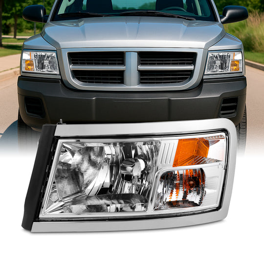 AKKON - Fit 2008 2009 2010 2011 Dodge Dakota 08-11 OE Style Halogen Type Headlights Chrome Driver - Passenger Set