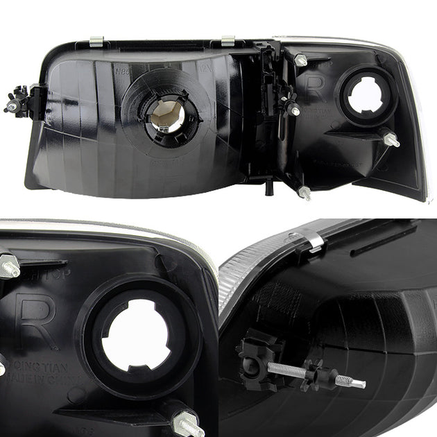 AKKON - For 1993-1997 Ford Ranger Pickup Truck Black Bezel Projector Headlights w/ Corner Signal Light Lamps Replacement