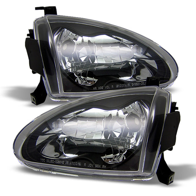AKKON - For 1993-1997 Honda Del Sol JDM All Model Black Clear Crystal Headlights Lamp Pair