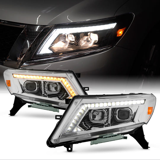 AKKON - Fits 2013-2016 Nissan Pathfinder Projector Chrome Headlights Headlamps Pair w/ LED DRL Running Lamp Turn Signal