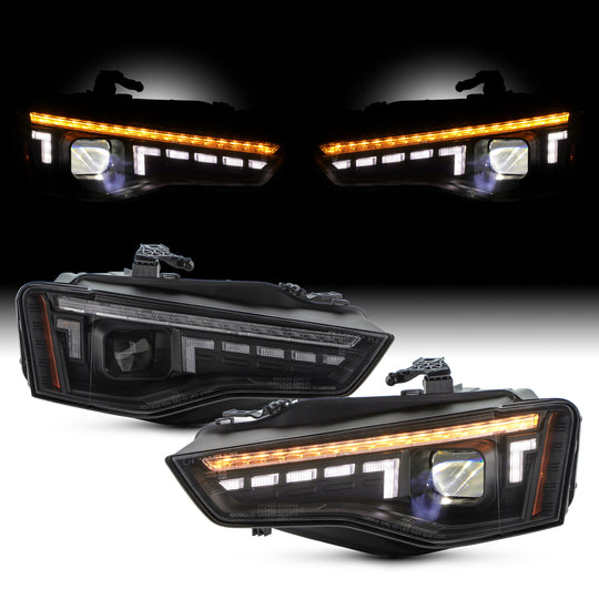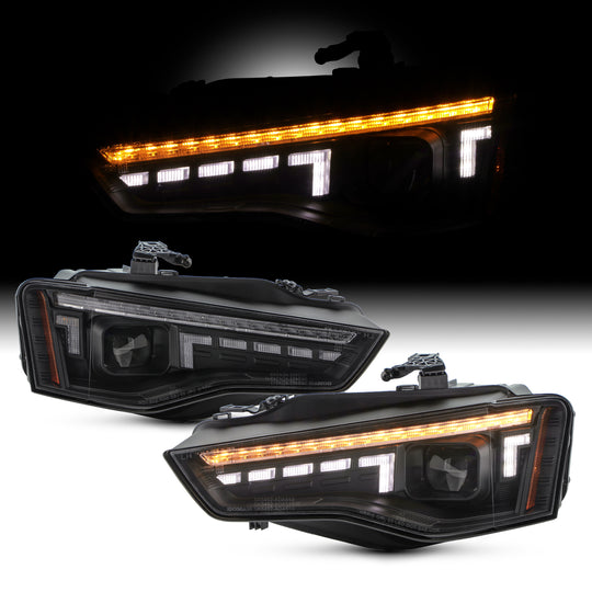 AKKON - Fits 2013-2017 Audi A5 HID Type [LED High&Low Beam] Projector Black Headlights Pair w/ Running Sequential Signal