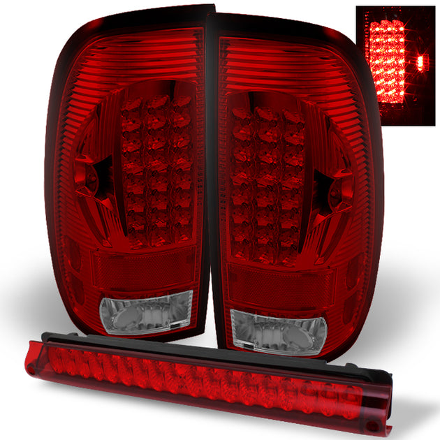 AKKON - For 1997-2003 Ford F-150 Styleside Pickup Truck Red Clear LED Tail Light + Red Led 3rd Brake Light Set