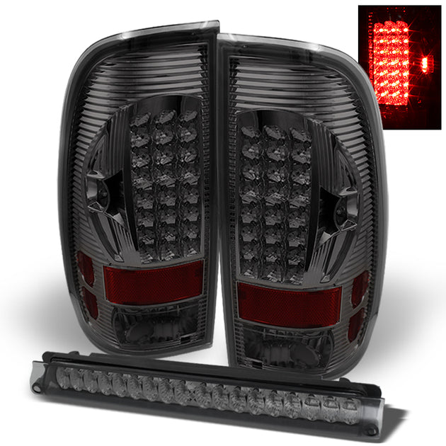 AKKON - For 1997-2003 Ford F150 F-150 Pickup Truck Styleside Smoke LED Tail Lights + Smoked G2 LED 3rd Brake Lamps