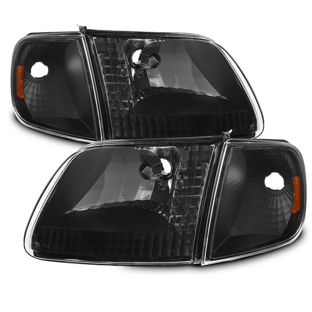AKKON - For 1997-2003 Ford F150 F250 Light Duty Expedition Black Headlights + Black Corner Siganl Lights Pairs