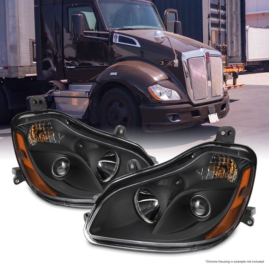AKKON - Fits 2013-2019 Kenworth T680 OE Halogen Style Projector Headlights Black Housing - Pair Replacement