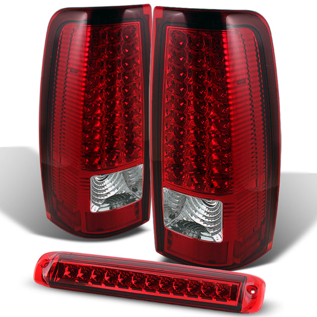 AKKON - For 1999-2002 Chevy Silverado 09-03 Sierra G2 Red Clear LED Tail Lights Lamps + Red LED 3rd Brake Light