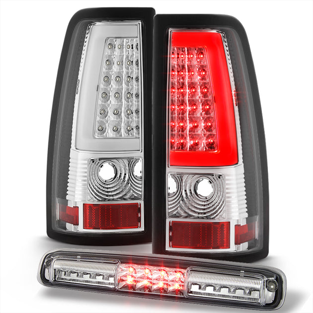 AKKON - For 1999-2002 Chevy Silverado 1999-2006 GMC Sierra LED Tube Chrome Tail Lights + 3rd Brake Light Set