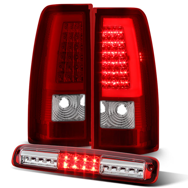 AKKON - For 1999-2002 Chevy Silverado 1999-2006 GMC Sierra LED Tube Red Clear Tail Lights + 3rd Brake Light Set