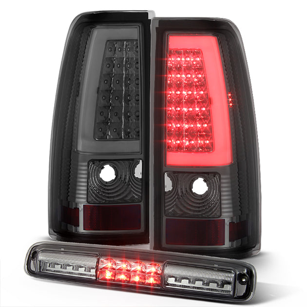 AKKON - For 1999-2002 Chevy Silverado 1500 2500HD 3500 GMC Sierra Smoked LED Tube Tail Light+Smoked LED 3Rd Lamp