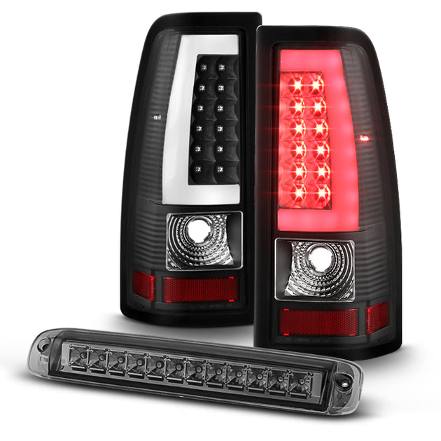 AKKON - For 1999-2002 Chevy Silverado | 1999-2006 GMC Sierra LED Tube Black Tail Lights + Smoked 3rd Brake Light