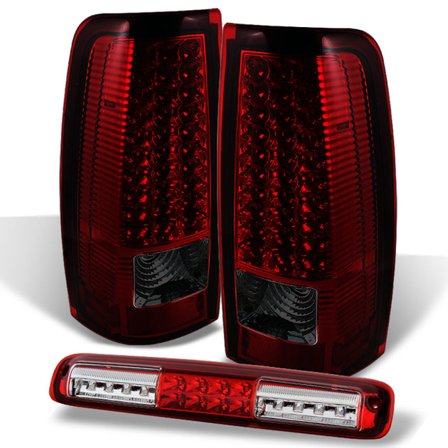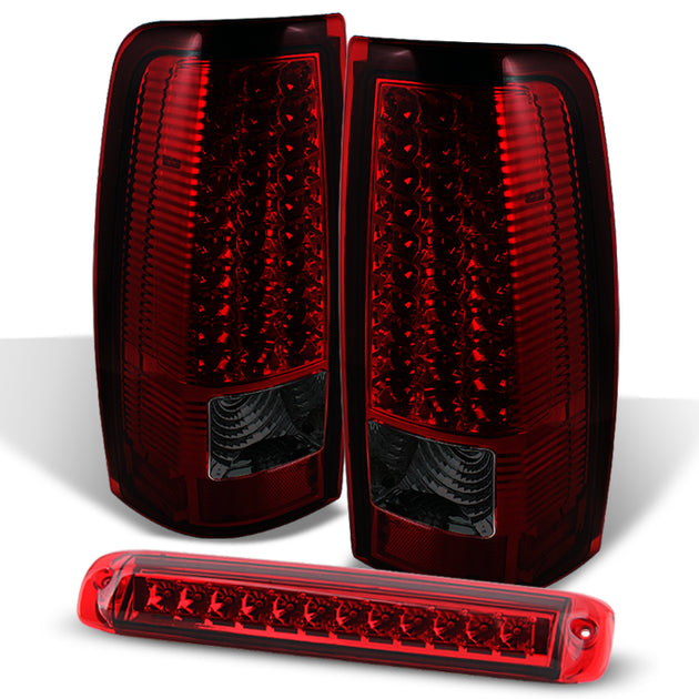 AKKON - For 1999-2002 Chevy Silverado Sierra GMC Truck Red Smoked LED Tail Lights+ Red LED 3rd Dual Brake Lamps