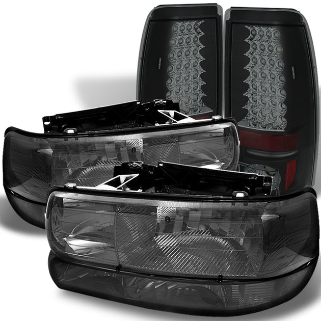 AKKON - For 1999-2002 Chevy Silverado Smoked Headlights +Bumper Signal Lamp+Philips Lumiled LED Tail Light