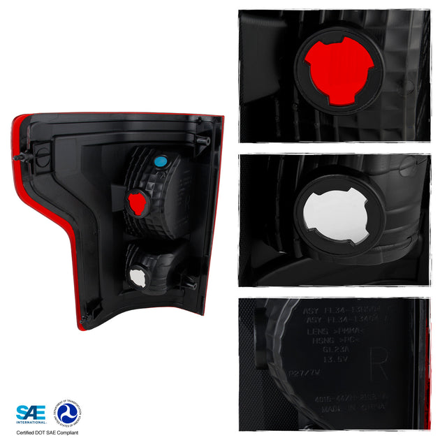 AKKON - Fit 2015 2016 2017 Ford F-150 Pickup Truck [Halogen Type] Red Clear Tail Lights Brake Lamp Pair Driver+Passenger