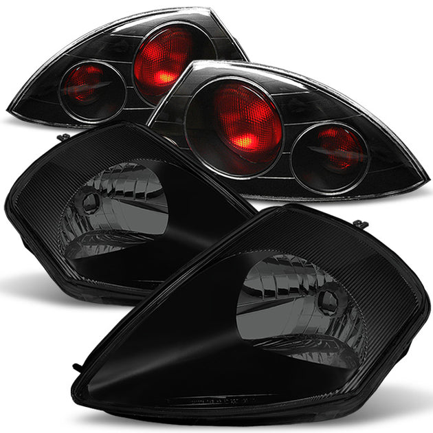 AKKON - For 2000-2002 Mitsubishi Eclipse Black Somked Headlights + Black Tail Lights Brake Lamps