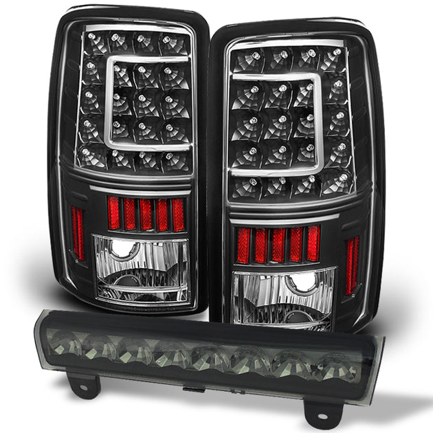 AKKON - For 2000-2006 Suburban Tahoe Yukon XL Liftgate LED [C-Style] Black Tail Lights + Smoked LED 3rd Brake Light Combo