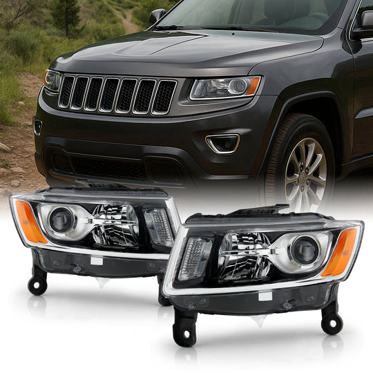 Regular price $155.99This is a 100% brand new pair of Replacement Headlights in Chrome Housing Clear Lens Compatible With: 2014-2016 JEEP Grand Cherokee w/ Halogen Type Headlight Moels ATTN: Compatible w/ Factory Halogen Type Headlight Models ATTN: Not... -