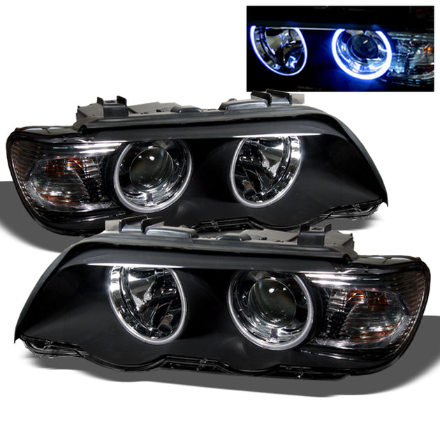 AKKON - For 2001 2002 2003 BMW E53 X5 Black CCFL Halo Projector Headlights Pair Driver + Passenger Side