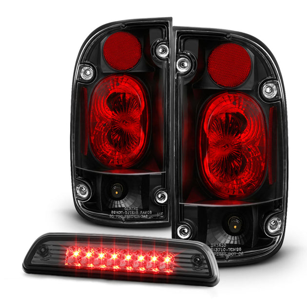 AKKON - For 2001-2004 Toyota Tacoma Left + Right Replacement Black Tail Lights Pair + LED Smoked 3rd Brake Lights Set