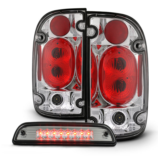 AKKON - For 2001-2004 Toyota Tacoma Left + Right Replacement Chrome Tail Lights Pair + LED 3rd Brake Lights Set
