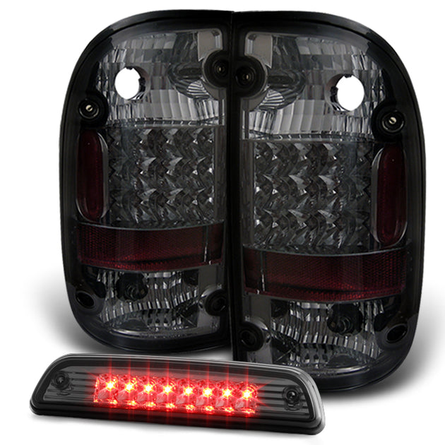 AKKON - For 2001-2004 Toyota Tacoma Left + Right Replacement Smoked LED Tail Lights Pair + LED 3rd Brake Lights Set