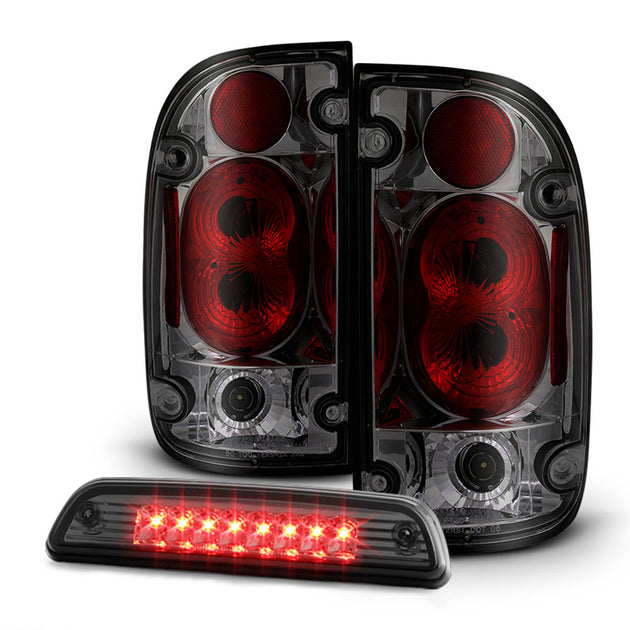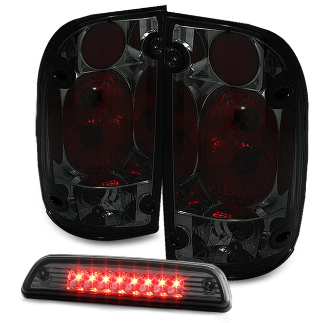 AKKON - For 2001-2004 Toyota Tacoma Left + Right Replacement Smoked Tail Lights Pair + LED 3rd Brake Lights Set