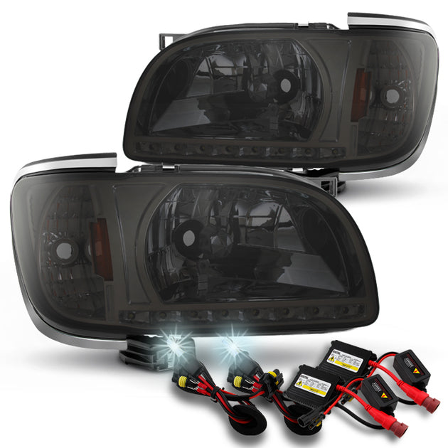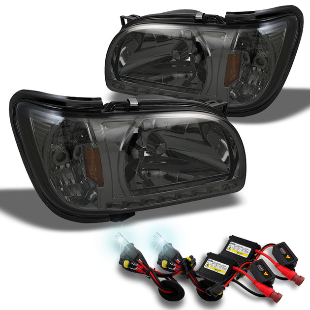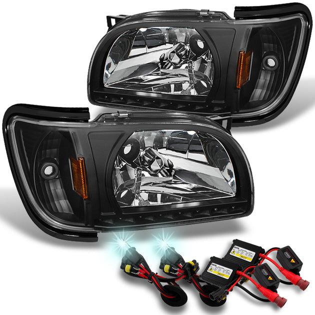 AKKON - For 2001-2004 Tacoma 1 Piece Smoked Headlights w/ Black Trim Corner Signal Lamps + Slim 6000K HID White