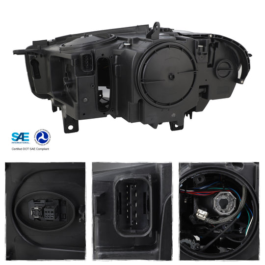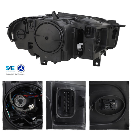 Regular price $289.99This is a 100% brand new piece of Replacement Headlight in Black Housing with Clear Lens Compatible With: 2014-2018 BMW X5 w/ HID/Xenon Headlight Models ATTN: compatible with HID/Xenon Headlight Models ATTN: Not Compatible with FULL... -