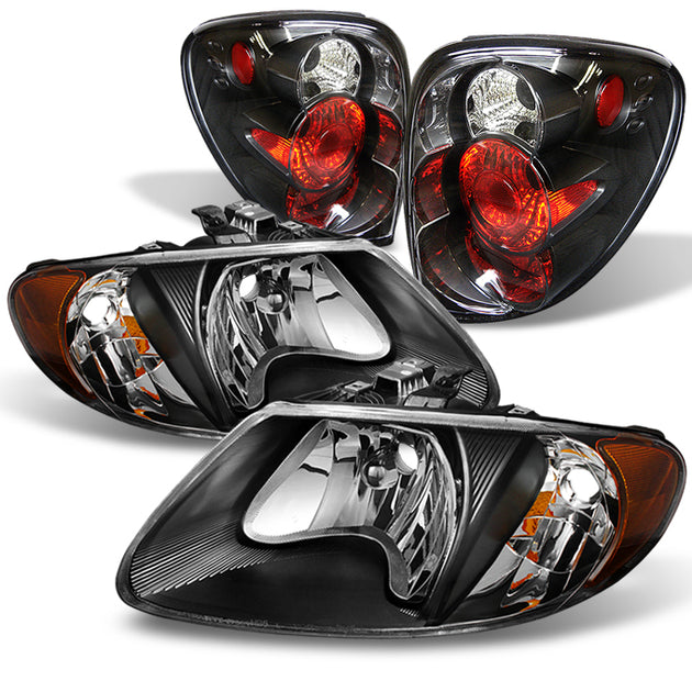 AKKON - For 2001-2007 Dodge Caravan Black Amber Headlights Lamps + Black Rear Tail Lights Brake Lamps
