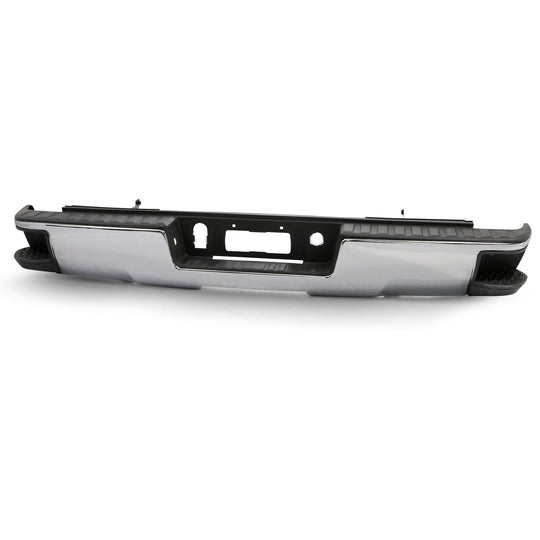 Regular price $258.99This is a 100% brand new piece of Replacement Rear Bumper in Chrome Color Compatible With: 2014-2018 Chevy Silverado 1500 w/o Sensor Holes and w/ Conner Step Holds Model 2014-2018 GMC Sierra 1500 w/o Sensor Holes... -
