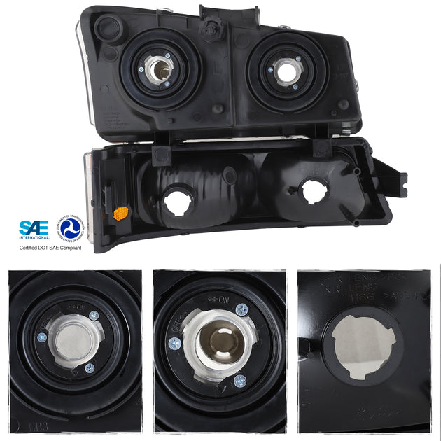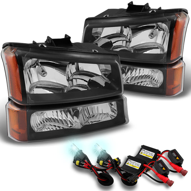 AKKON - For 2003-2006 Chevy Silverado Avalanche Black Bezel Headlights w/ Bumper Lamp Driver+Passenger Head Lights Pair