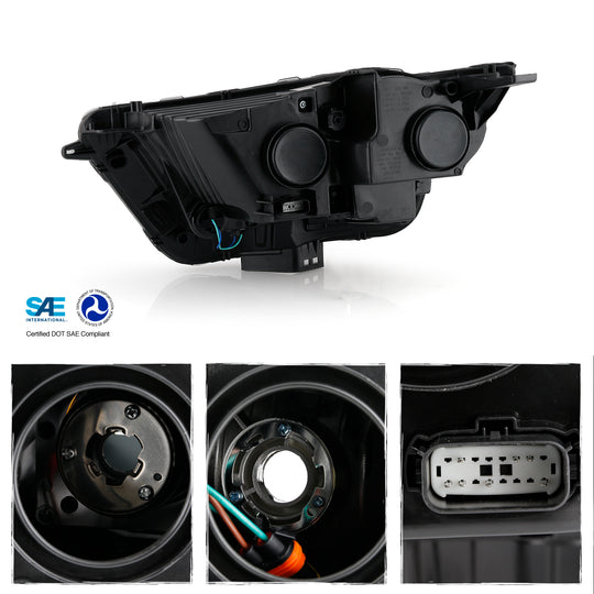 AKKON - Fits 2015 2016 2017 2018 Ford Edge [Halogen Type] Projector Black Trim Headlight Driver Left Side Replacement