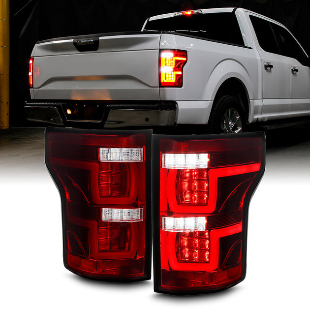 AKKON - Fit 2015-2020 Ford F150 15-20 [U-Shape LED Tube] Tail Lights Rear Brake Lamp Assembly Dark Red Lens