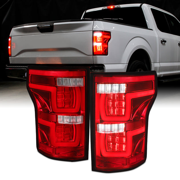 AKKON - Fit 2015-2020 Ford F150 15-20 [U-Shape LED Tube] Tail Lights Rear Brake Lamp Assembly Red Clear Lens
