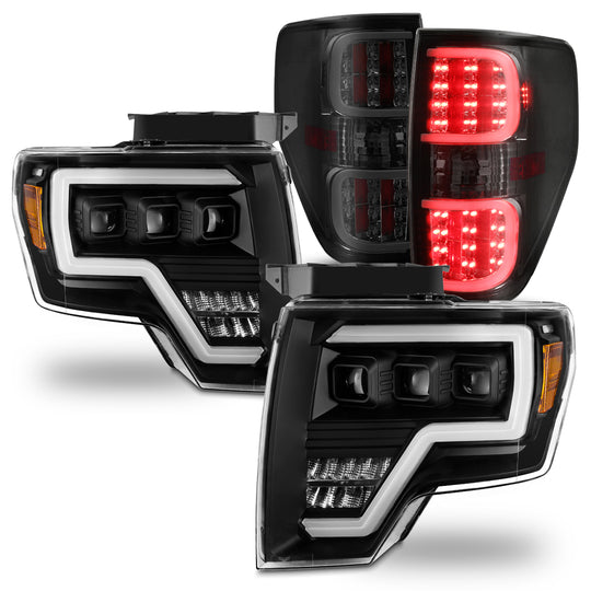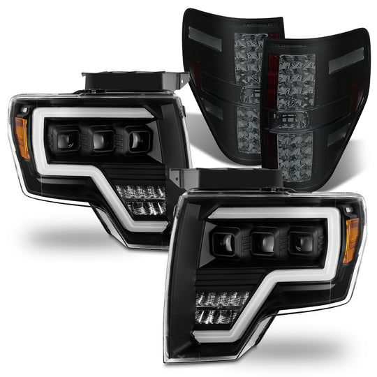 Regular price $684.99This is a 100% brand new pair of Headlights in Black Housing + Tail Lights in Black Housing with Smoked Lens Combo Compatible With: 2009-2014 Ford F150 ATTN: Compatible with Halogen Type Headlight Models ATTN: Not... -