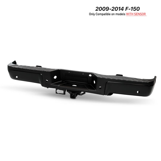 Regular price $338.99This is a 100% brand new piece of Black Replacement Rear Bumper Compatible With: 2009-2014 Ford F-150 ***For Styleside Bed Model Only*** ***Built With Parking Sensor Holes & Base Towing Packing*** ***Hardware Brackets Lights and Step... -